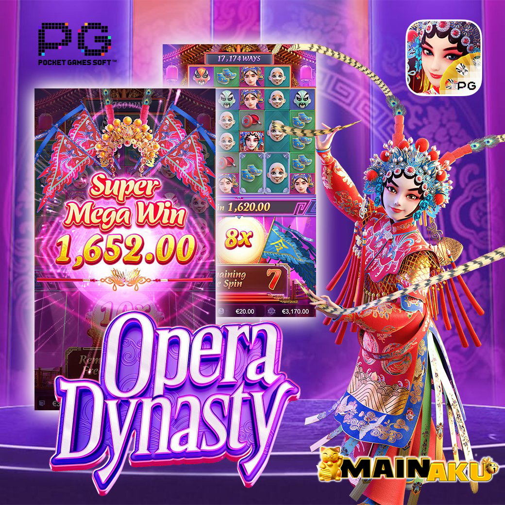 Opera Dynasty mengusung tema budaya klasik Tiongkok, menampilkan panggung opera dengan kostum tradisional, ornamen emas, dan simbol-simbol artistik yang unik. Grafis yang detail dan animasi halus membuat setiap putaran terasa hidup dan penuh drama, menambah sensasi bermain.